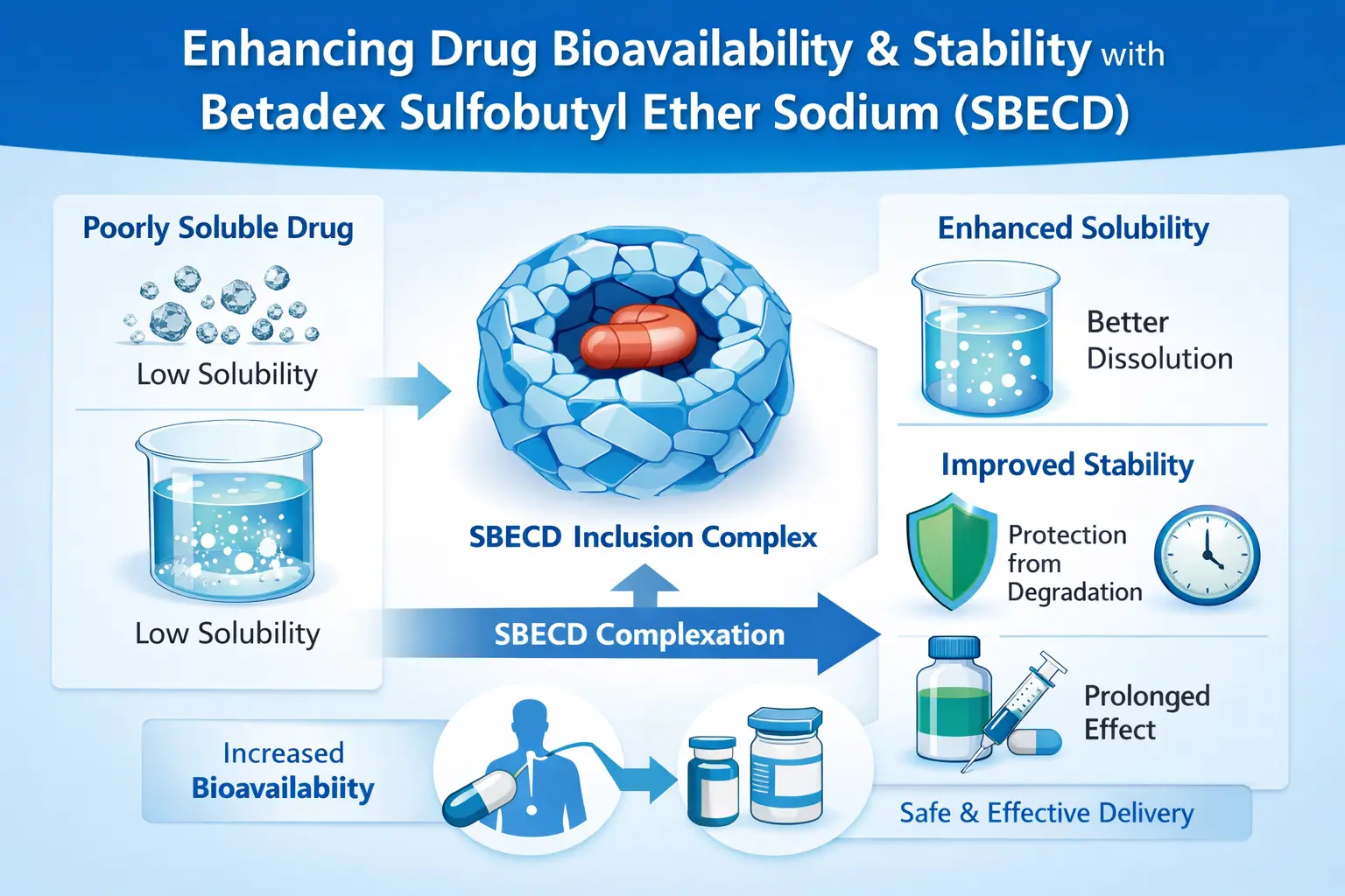 Betadex スルホブチル エーテル ナトリウムは、医薬品賦形剤の科学における大きな前進です。これまでは作るのが難しかった医薬品の化合物を調合することが可能になります。安定性とバイオアベイラビリティを同時に改善できるため、現在の医薬品開発には不可欠です。 SBECD の分子カプセル化特性が SBECD を機能させるのです。彼らは、簡単には溶けない薬を非常に入手しやすい形にします。製薬会社がより複雑な治療用化合物を作り続ける中、SBECD は研究や発売中にうまく機能する製品を作るために必要な製剤の自由を与えます。